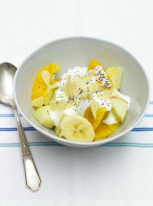 bowls and spoon some of the yoghurt over each. Sprinkle the poppy seeds
